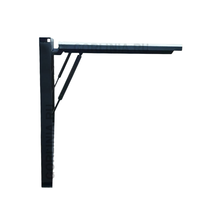 Дверца 780х578 с одной осью вращения поднимается на 90°. Амортизаторы выставлены на удержание веса 2-4 кг статической нагрузки в открытом положении. При опускании после 2/3 хода створка становится практически статичной. На последних 5° поджимается к уплотнителю четверти коробки обратной тягой амортизаторов.